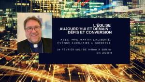 Bonjour, Vous êtes cordialement invité(es) à la prochaine Rencontre ZOOM du Montmartre, le 24 février 2021 de 19 h 00 à 20 h 30 avec Mgr Martin Laliberté, évêque auxiliaire à Québec. Mgr Martin Laliberté a travaillé en mission particulièrement