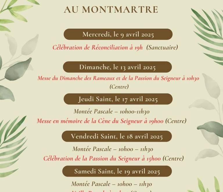 Articles, Prière et intériorité14 avril 2025Horaire des célébrations de la Semaine Sainte au Montmartre