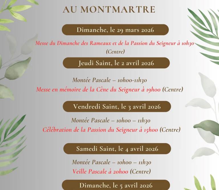 HORAIRE DES CÉLÉBRATIONS DE LA SEMAINE SAINTE AU MONTMARTRE