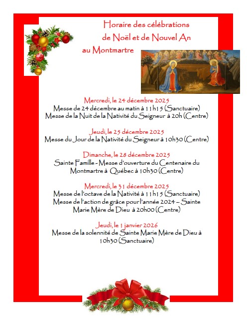 Horaire des célébrations de Noël et de Nouvel An au Montmartre