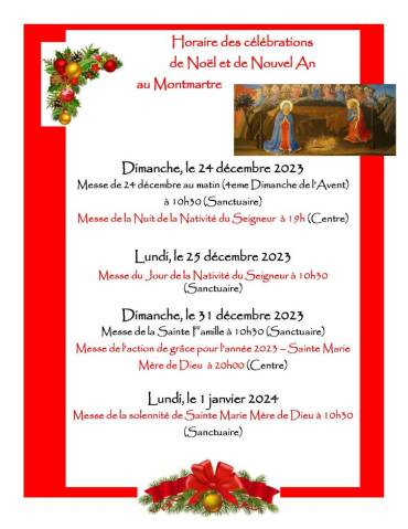 HORAIRE DE NOËL ET DU JOUR DE L’AN