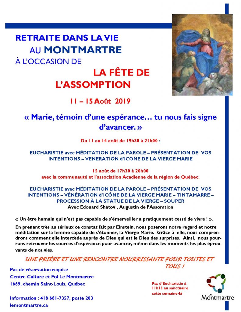 Retraite dans la vie à l’occasion de la fête de l’Assomption