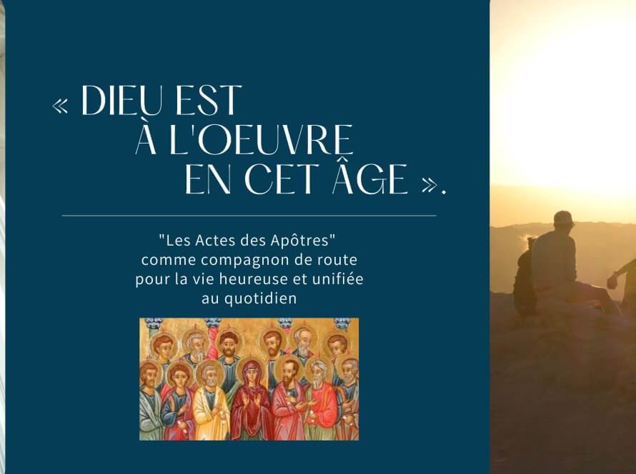 Formations17 septembre @ 15 h 00 min - 16 h 30 min« DIEU EST À L’OEUVRE EN CET ÂGE ». « Les Actes des Apôtres » comme compagnon de route pour la vie heureuse et unifiée au quotidien