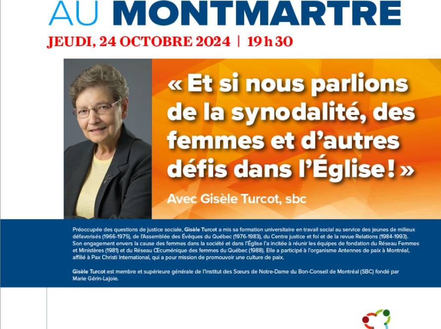 Conférences et débats24 octobre 2024 @ 19 h 30 min - 21 h 00 minEt si nous parlions de la synodalité, des femmes et d’autres défis dans l’Église !